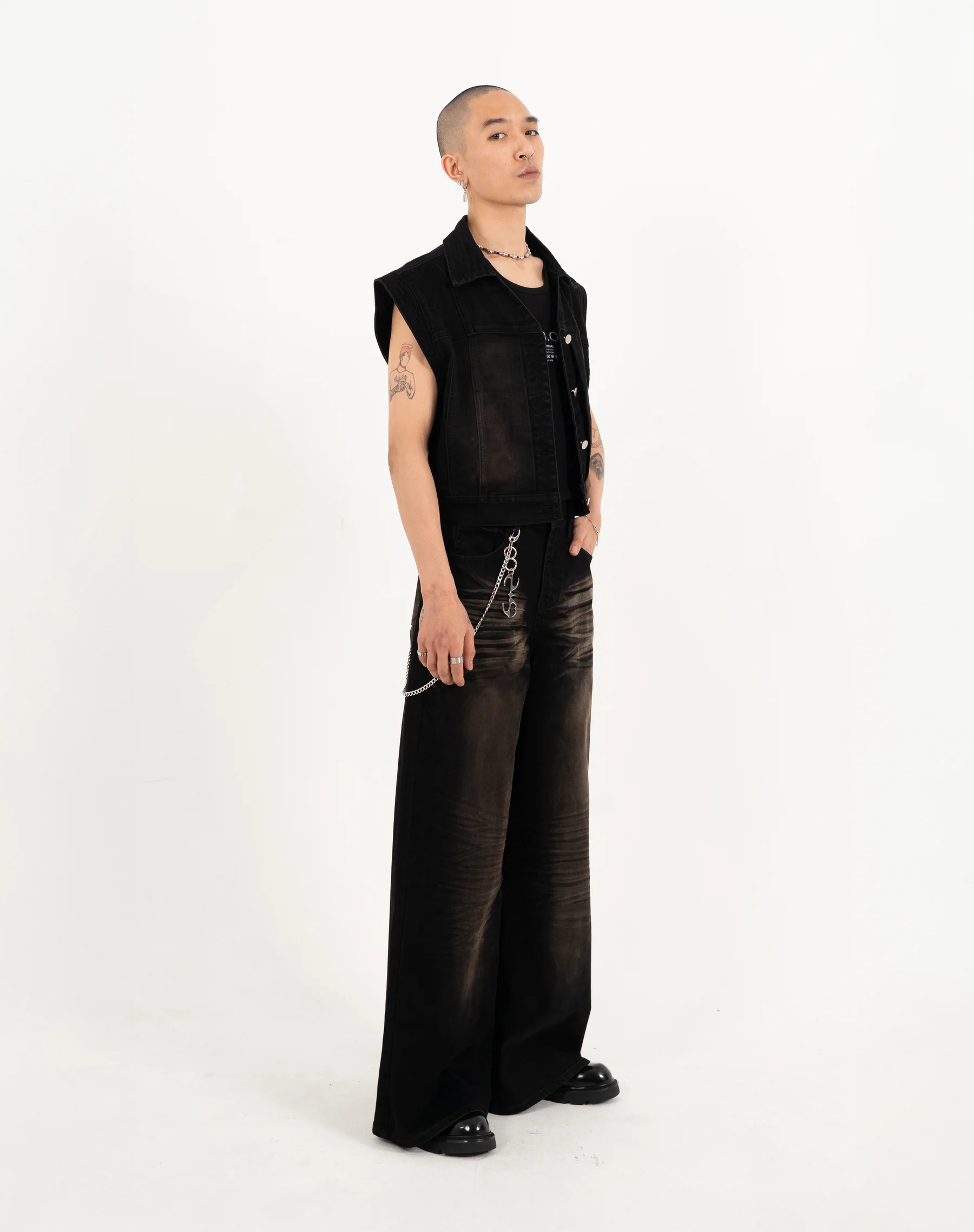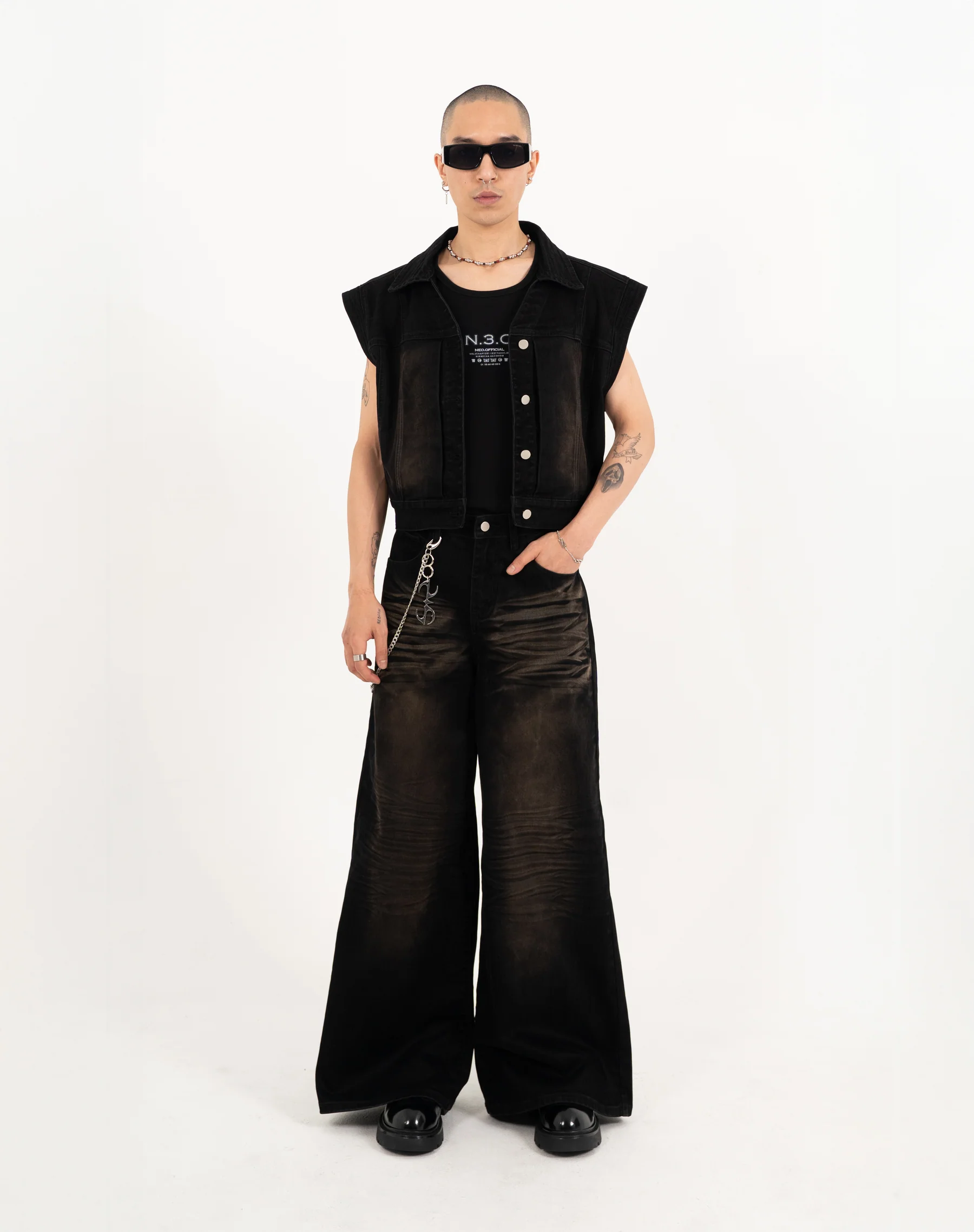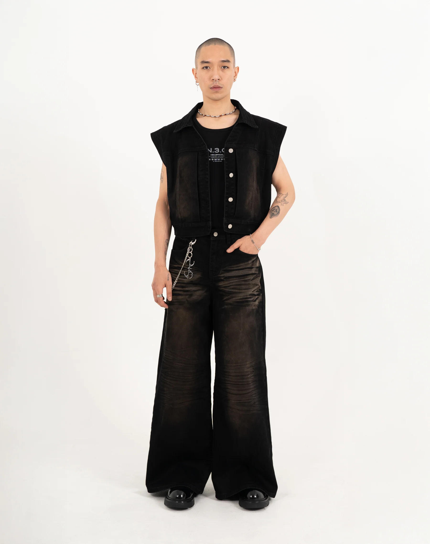 N E O CH.2 Faded Wrinkle Wide Leg Pant